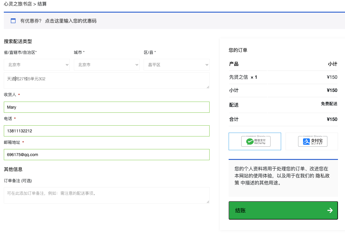 第二步 填入具体地址,选择微信或支付宝